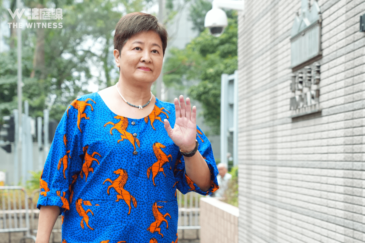 余慧明 2021 年 7 月向高院申請保釋獲批,其後被指違反條件,被撤銷保釋、再度收押。她由大狀石書銘代表。圖為她獲准保釋後離開高院。(資料圖片)